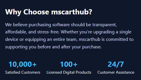 mscarthub.online is a modern digital marketplace built to deliver authentic software licenses and productivity solutions at competitive prices—without complexity.